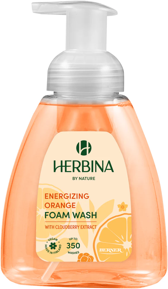 Hellävarainen ja riittoisa Herbina vaahtosaippua Energizing Orange sopii päivittäiseen käsien ja vartalon pesuun koko perheelle. Unelmanpehmeä koostumus ei kuivata ihoa ja jättää sen raikkaan ja pehmeän tuntuiseksi. Energisoiva yhdistelmä raikasta appelsiinia ja kotimaista lakkauutetta virkistää aistisi käsien pesun yhteydessä.